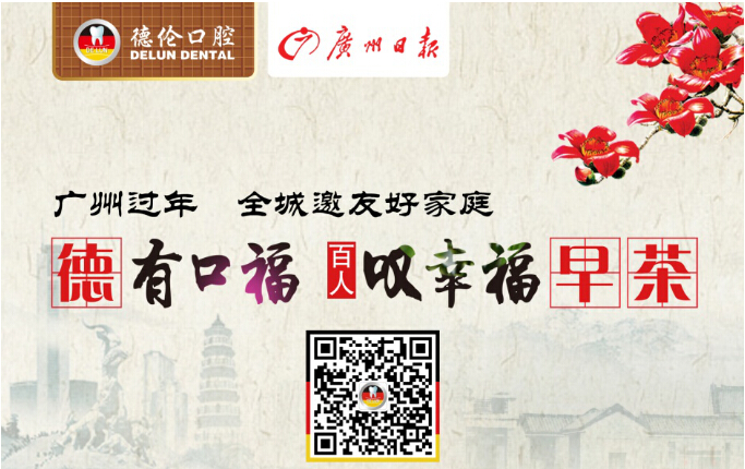 “花城人家,德有口福”——百人叹幸福早茶活动将于2016年1月1日在有广府特色的知名酒家举行,届时,赞助与支持单位--德伦口腔、种植专家将进行《护齿养生,叹一世早茶》专题讲座,传递现代护齿理念。现面向全城招募百名广州市民一起迎接元旦,听讲座,叹2016第一道幸福早茶。